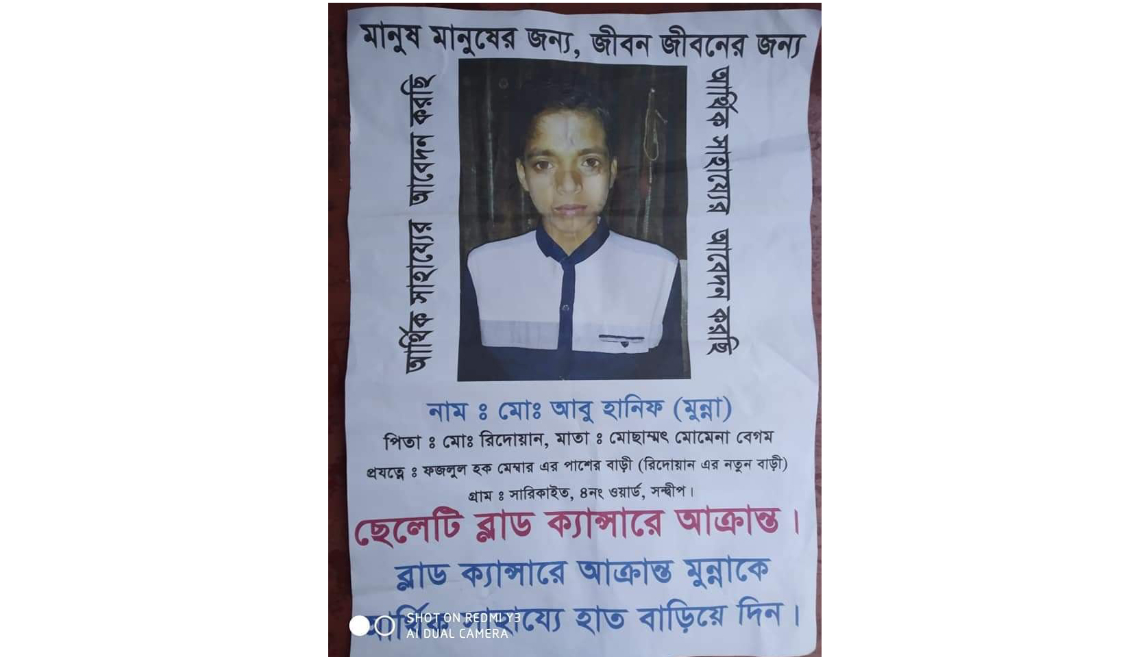 আপনার একটু সহায়তায় আল্লাহর রহমতে বেঁচে যাবে একটি প্রাণ।সন্দ্বীপ সারিকাইত ইউনিয়নের ৪ নং ওয়ার্ডের রিদোয়ানের বাড়ির।