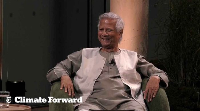 বুধবার (২৫ সেপ্টেম্বর) যুক্তরাষ্ট্রের নিউইয়র্কে মার্কিন সংবাদমাধ্যম নিউইয়র্ক টাইমস আয়োজিত ‘ক্লাইমেট ফরওয়ার্ড’ শীর্ষক এক অনুষ্ঠানে করা প্রশ্নে তিনি এসব কথা বলেন। জাতিসংঘের সাধারণ পরিষদের অধিবেশনে যোগ দেয়া উপলক্ষে যুক্তরাষ্ট্রে অবস্থান করেছেন ড. ইউনূস।